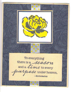 When I took up the doily, I thought it looked like land next to the ocean, so I got the idea do a"sailing" theme- imagine that the sailboat is heading out to sea from anchor in a cove. I again masked with the doily and stamped an antique map along the right side; removed the doily, and stamped a sailboat, compass, antique map, and verse. It was also a requirement to use your Cuttlebug, so I embossed the C/S with the Swiss Dots folder before cutting out the Bosskut letters (though they are so tiny, it's hard to see the dots).